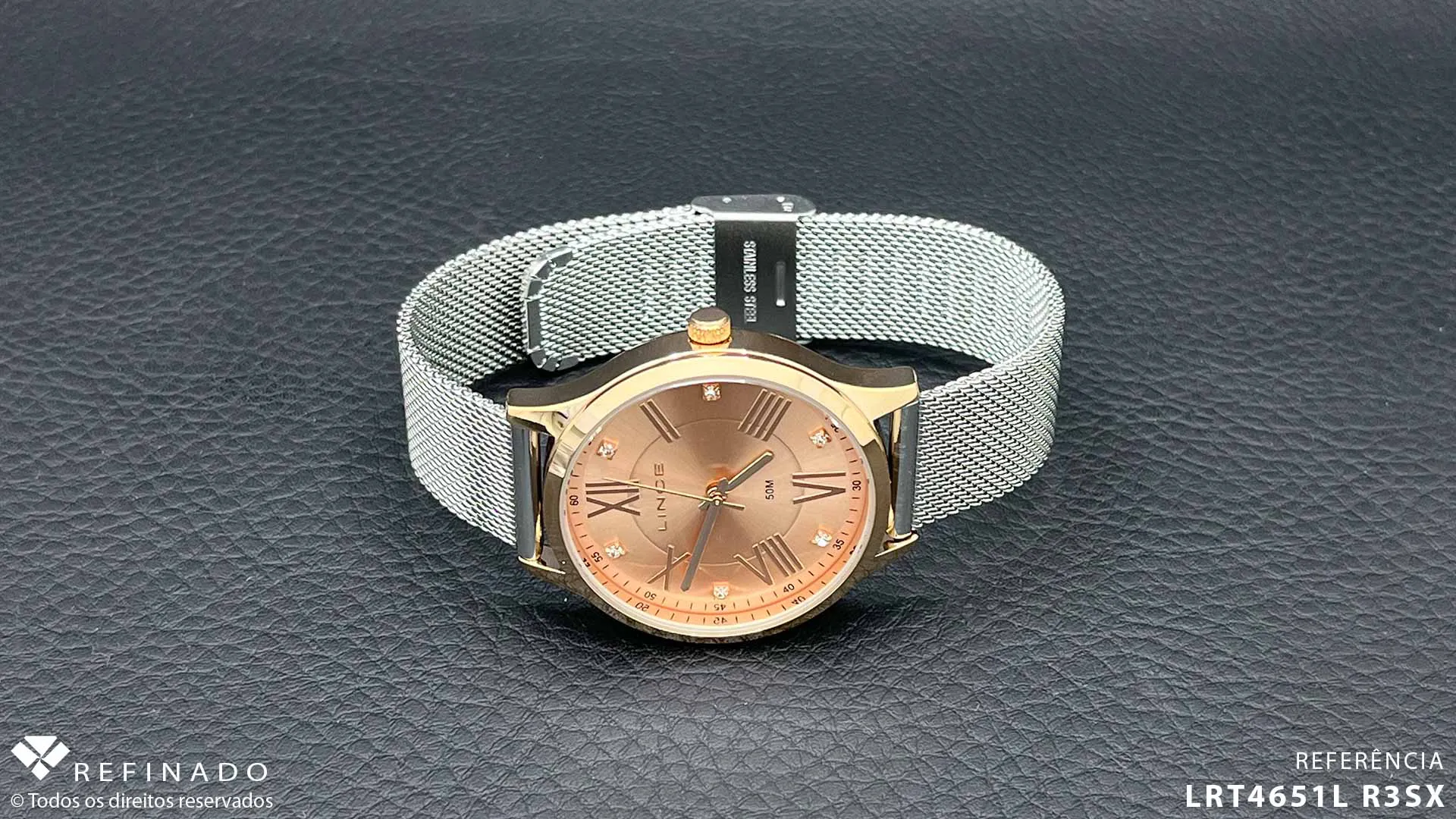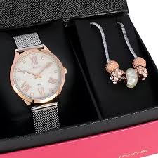 Características: com caixa rose e pulseira em aço, este produto acompanha uma gargatilha e um par de brincos (acessório/brinde sujeito a alteração).