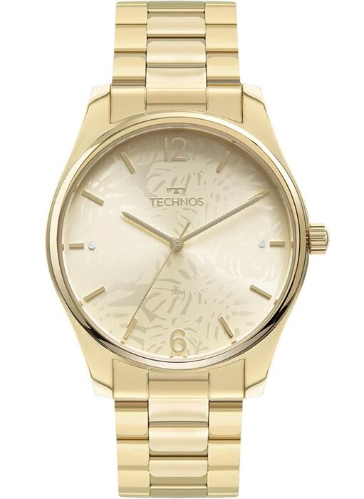 O Relógio Feminino Technos Fashion Trend 2035MVS/1X é um ícone de estilo e feminilidade. Sua caixa de 40?mm, em aço inox com banho dourado, harmoniza com o mostrador champanhe decorado com folhagens sutis e dois cristais elegantes, agregando um toque de sofisticação discreta.
