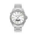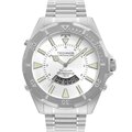O mostrador branco oferece boa visibilidade, complementado por ponteiros luminescentes e display digital estilo “sorriso” na parte inferior, marca do modelo Skydiver . A pulseira de aço robusta conta com fecho dobrável e trava lateral, garantindo segurança no uso diário e durante atividades .