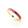 Meia aliança em ouro 18K com 8 rubis de 10 pontos cada, disponível no tamanho 17. Uma joia luxuosa e sofisticada, perfeita para ocasiões especiais ou para quem busca um anel marcante e elegante com pedras preciosas.