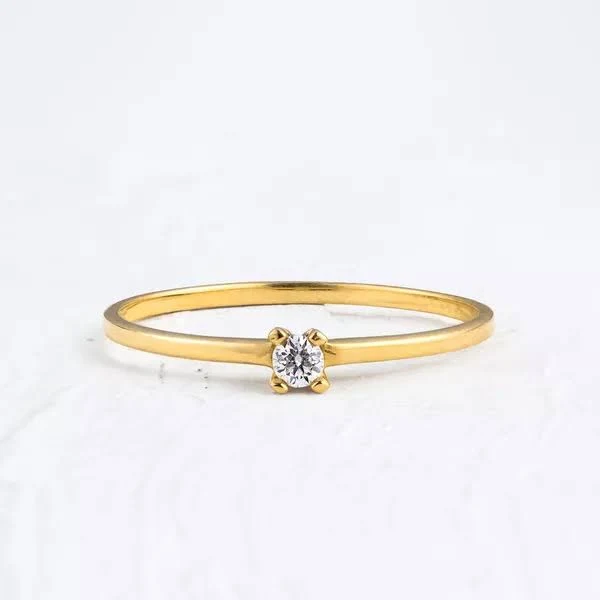 Anel solitário em ouro 18K com brilhante de 10 pontos, uma joia elegante e atemporal que simboliza amor e compromisso. Perfeito para noivados, ocasiões especiais ou para quem busca delicadeza e sofisticação no dia a dia.