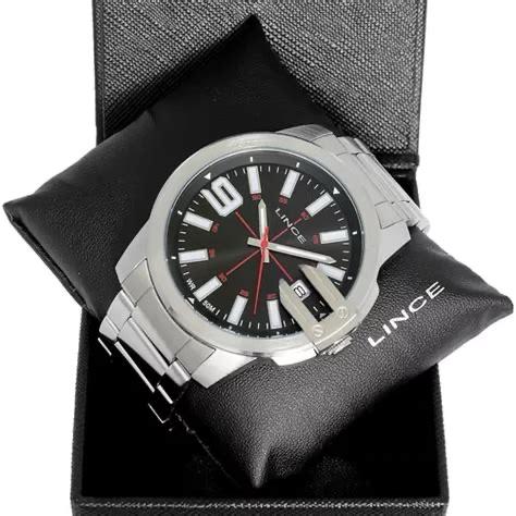elógio Lince masculino, modelo P2SX, caixa de aço, fundo preto, movimento quartz, mostrador analógico, calendário, resistente à água, pulseira metálica, design elegante e clássico, ideal para ocasiões especiais, durabilidade, estilo sofisticado e luxuoso