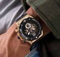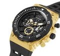 O Relógio Guess Masculino – DCR-E 2021/20343-8 combina robustez e sofisticação. Sua caixa redonda em aço inoxidável dourado traz elegância ao visual, enquanto a pulseira em silicone preto garante conforto para o uso diário. O mostrador preto com marcadores claros facilita a leitura do tempo e traz um toque contemporâneo. Com movimento analógico de quartzo, cristal mineral e resistência à água de até 30 metros, é uma excelente escolha tanto para looks casuais quanto para momentos mais formais.
