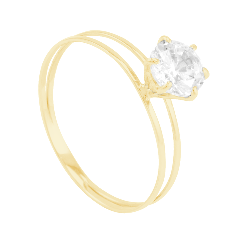 Anel solitário em ouro 18K com zircônia central, pesando 1,10g e disponível no tamanho 14. Um clássico atemporal que une delicadeza e elegância, perfeito para presentear em momentos especiais ou celebrar o amor.
