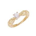 Anel solitário em ouro 18K com design rendado, pesando 1,39g e disponível no tamanho 17. Uma joia elegante e delicada, perfeita para ocasiões especiais ou para quem busca um anel diferenciado que une charme e sofisticação.