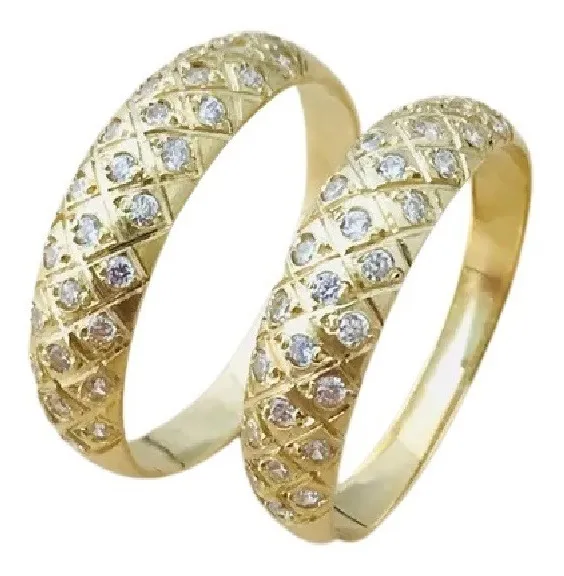 Aparador de aliança em ouro 18K, cravejado com zircônias, pesando 5,43g e disponível no tamanho 16. Uma joia sofisticada e cheia de brilho, perfeita para complementar alianças ou ser usada sozinha, destacando-se pela elegância e exclusividade.