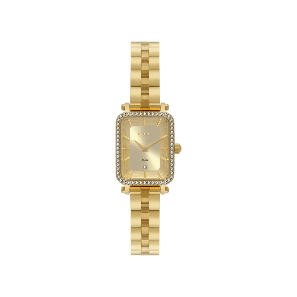 O Relógio Orient Feminino C1KX é a combinação perfeita de elegância e funcionalidade. Com uma caixa retangular dourada adornada com zircônias, este acessório destaca-se pelo seu design sofisticado. A pulseira em aço inox dourado complementa o visual luxuoso, tornando-o ideal para ocasiões especiais e uso diário. Equipado com movimento analógico de quartzo, oferece precisão e confiabilidade. Além disso, possui resistência à água de até 50 metros, proporcionando durabilidade e segurança.