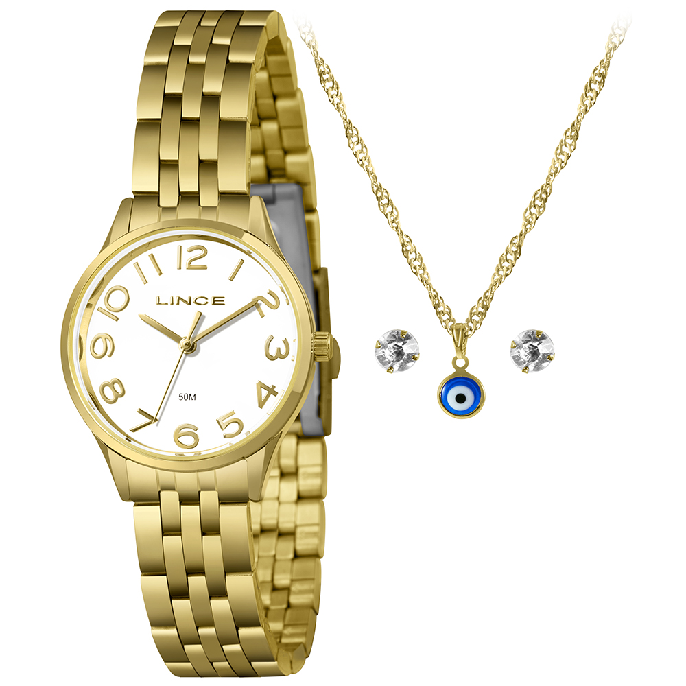 Características: com caixa dourada e pulseira em aço