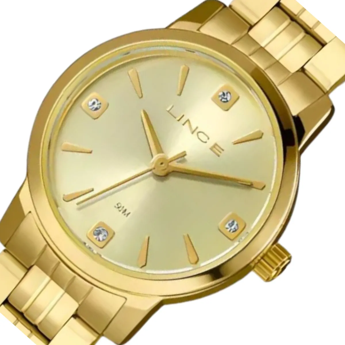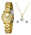 Características: com caixa dourada e pulseira em aço, este produto acompanha uma gargantilha e um par de brincos (acessório/brinde sujeito a alteração).