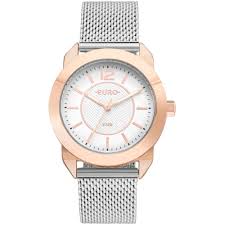 O Relógio Feminino Euro EU2036YLT/4J – Geometric Power traz modernidade e leveza com seu visual clean e elegante. Sua caixa rosé de 38?mm combina com a pulseira tipo mesh em aço inox prata, criando um contraste suave e sofisticado. O mostrador branco apresenta marcadores geométricos discretos e ponteiros rosé, perfeito para mulheres que preferem estilo minimalista.