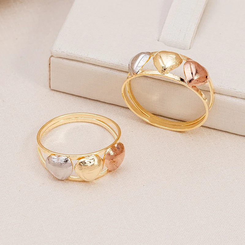 Anel feminino nº23 em ouro 10K, com três corações em ouro branco, amarelo e rosê, pesando 1,40g. Uma peça trabalhada, delicada e sofisticada, ideal para presentear ou complementar seu estilo com charme.