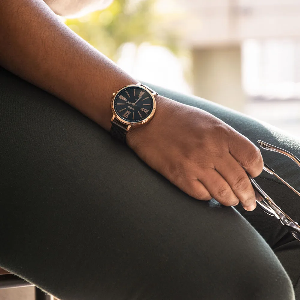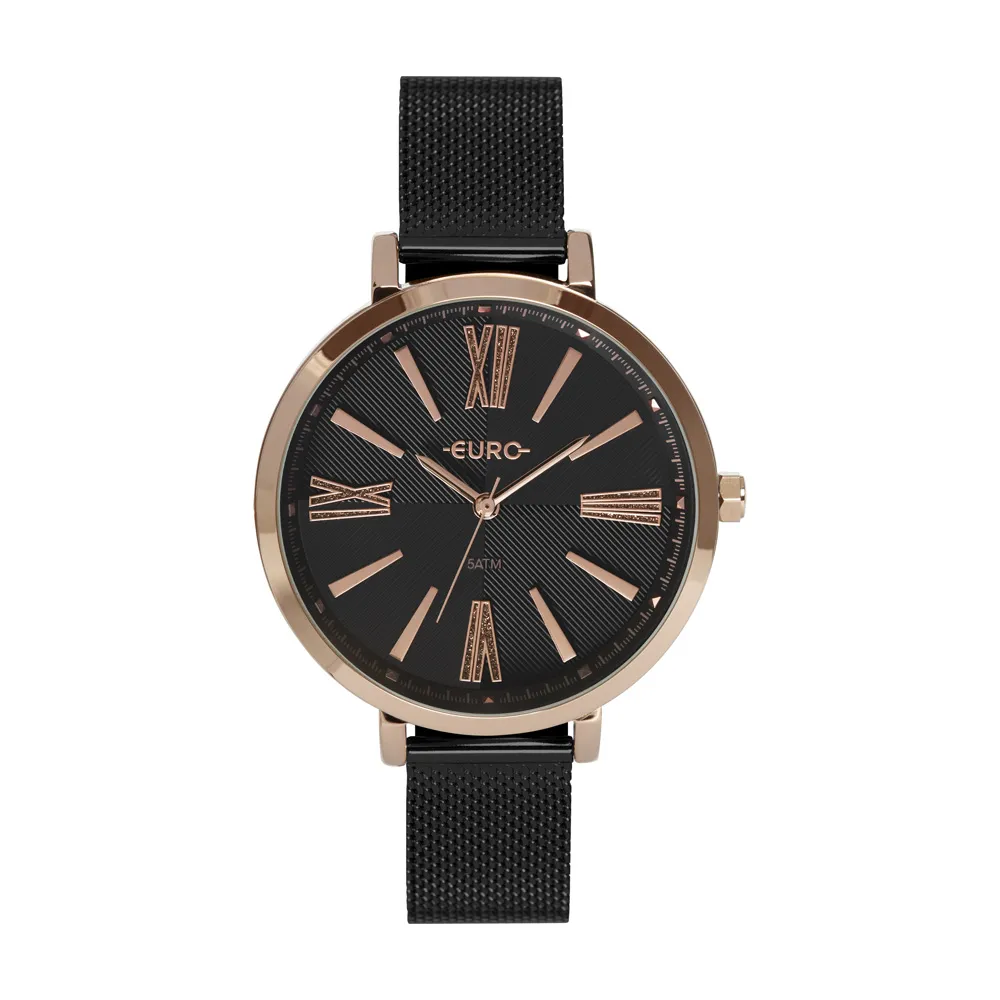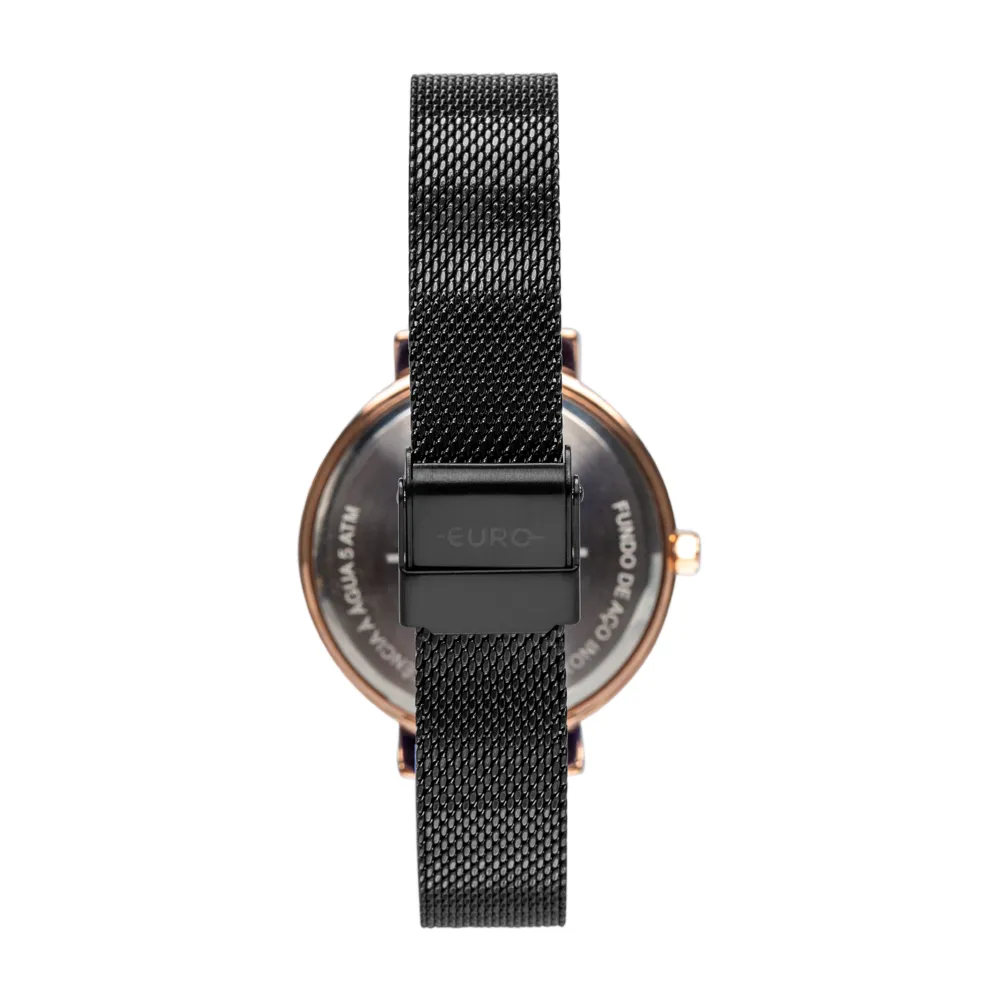 O Relógio Feminino Euro EU2036YPT/5P entrega um visual moderno e sofisticado. Seu mostrador preto com textura discreta, combinado à caixa rosé e pulseira mesh preta em aço inox, oferece um equilíbrio perfeito entre estilo e versatilidade. Ideal para usar tanto em ocasiões casuais quanto em produções mais elegantes.